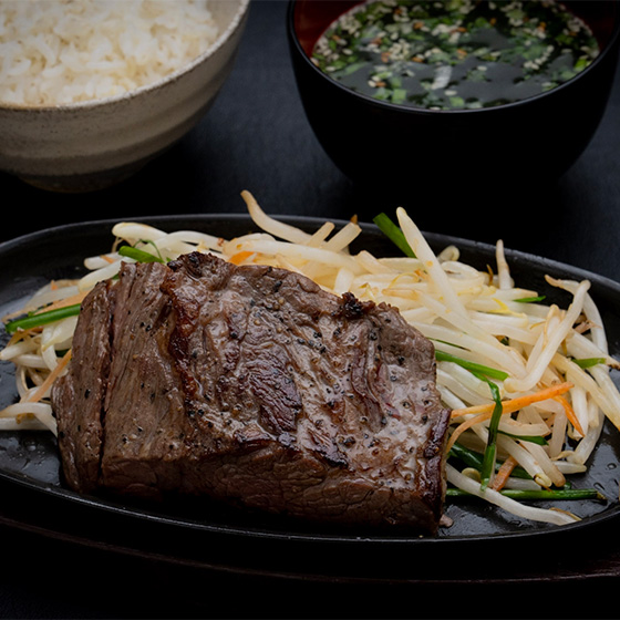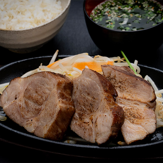 鉄板食堂「肉やまだ」のおいしいところをまるっと食べられる名物定食! 丸腸とサガリ、ポークステーキとミックスホルモンが、少しずつお得に食べられます。